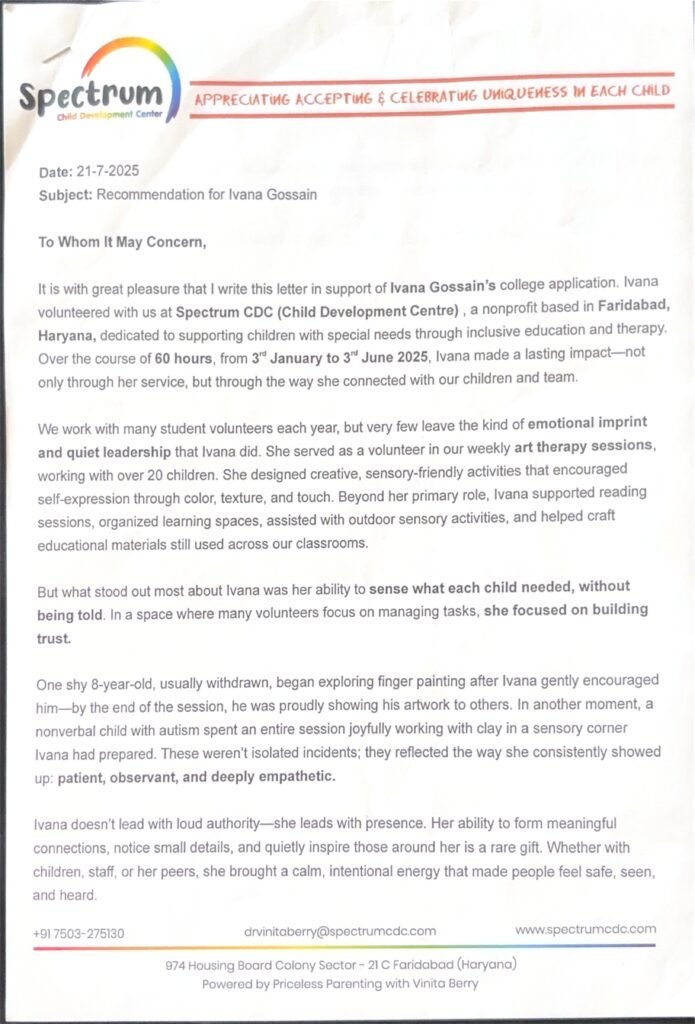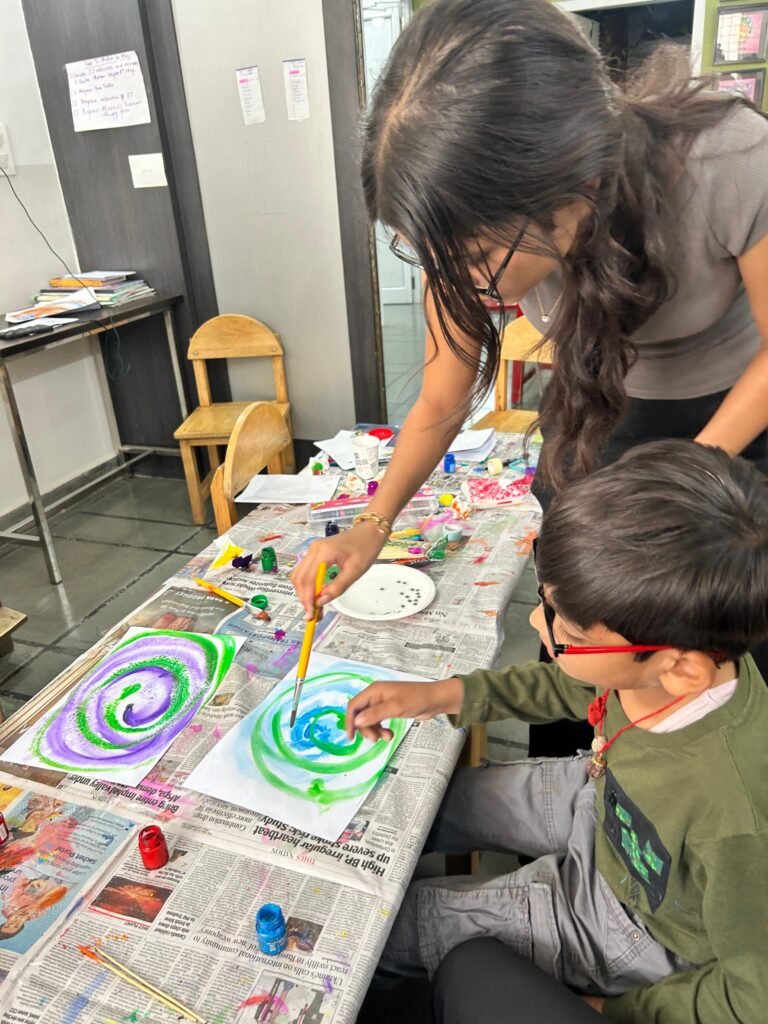 I founded Scribbles to Serenity, an art therapy initiative bringing creativity and emotional healing to underprivileged children and those with disabilities at Spectrum and Prayaa. Working with kids aged 4–17 in batches of 15–20 per session, we used mandala art for mindfulness, scratch art for curiosity, murals for teamwork, and sensory painting for relaxation, creating spaces for free expression and pride.